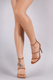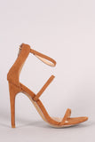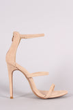 This gorgeous heel features an open toe silhouette, triple skinny straps, and wrapped stiletto heel. Finished with lightly cushioned insole and rear zipper closure for easy on/off.
