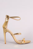 This gorgeous heel features an open toe silhouette, triple skinny straps, and wrapped stiletto heel. Finished with lightly cushioned insole and rear zipper closure for easy on/off.