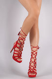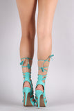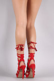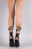 Wild Diva Lounge Suede Strappy Loop Lace-Up Platform Heel