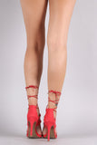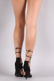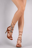 This lace up design with a cage back silhouette. Single strap across the vamp.