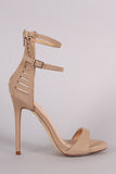 Nubuck Double Ankle Strap Caged-Back Stiletto Heel