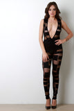 Plunging V Fishnet Grid Sleeveless Jumpsuit