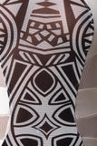 Tribal Contrast Mesh Panel Mock Neck Midi Dress