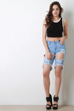 Distress Hole Bermuda Denim Shorts