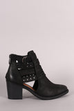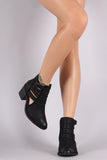• Qupid Distressed Suede Perforated Strap Western Booties