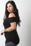 Mesh Yoke Cold Shoulder Side Ruched Top