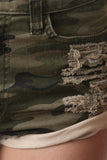 These shorts features a stretch fabrication, camo pattern, 4 pocket design, zipper and single button closure, belt loops, distressed details, finished with a frayed half cuffed hem. Accessories sold separately. Made in U.S.A. 98% Cotton 2% Spandex.