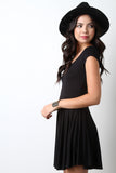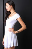 This casual dress features a jersey knit fabrication, scoop neckline, cap sleeves construction, and flowy flare skirt. Finished with an elasticized cinched waist. Accessories sold separately. Made in U.S.A. 94% Rayon, 6% Spandex.