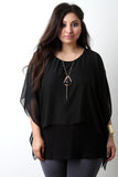 Chiffon Poncho Overlay Teardrop Necklace Top