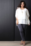 This plus size top features a chiffon poncho overlay with an open cut sleeves, jersey knit underlay, scoop neckline, and includes a teardrop with crystal charm necklace. Other accessories sold separately. Made in U.S.A. Self: 100% Polyester, Contrast: 95% Rayon, 5% Spandex.