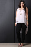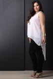 This plus size top features layered lightweight chiffon, scoop neckline, sleeveless construction, and high-low hemline. Accessories sold separately. 100% Polyester.