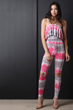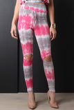 These leggings feature a soft knit fabrication tie dye coloring, faux drawstring, optional fold over waist band for high waist of regular, tapered cut legs and hemmed knee slits. Accessories sold separately Made in U.S.A. 100% Rayon.