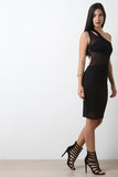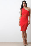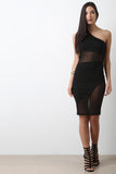 Asymmetrical One Shoulder Mesh Panel Midi Dress