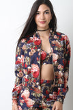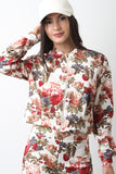 Floral Print Long Sleeve Zip-Up Jacket