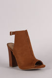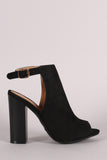 Bamboo Suede Ankle Strap Chunky Heeled Mule Booties