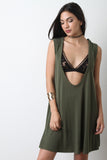 This dress features soft rib knit, plunge neck, sleeveless design, and slight high-low hemline. Accessories sold separately. Made in USA. 65% Modal, 35% Polyester.