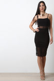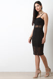 Contrast Mesh Panel Spaghetti Strap Midi Dress