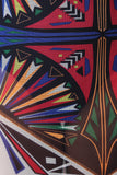This maxi dress features a semi-sheer mesh fabrication with abstract geometrical print, deep v-neckline, contrasting waist band, ang long sleeves fit. Accessories sold separately. Made in U.S.A. 100% Polyester.