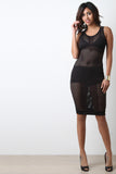 This stylish dress features a perforated fabrication, scoop neckline, sleeveless fit, and midi-length banded hemline. Accessories sold separately. Made in U.S.A. 100% Polyester.