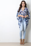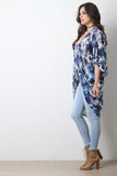This top features a chiffon fabrication, floral print pattern, silver button closure, cocoon shaped silhouette, and a high low hemline. Accessories sold separately. Made in U.S.A. 100% Polyester.