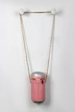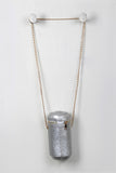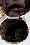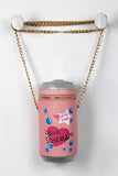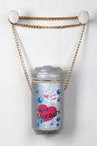 This humorous bag features a glittered vegan leather material, heart and bubble liquid sarcasm print at front, zipper closure, and a chain link shoulder strap (25" drop). Fully lined.