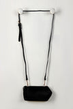 This artsy bag features a vegan leather material, pencil shaped and outlined detail, top zipper closure with side snap button, and interior has a pocket and full lining. Finished with a detachable and adjustable buckle shoulder strap (25.5" drop).