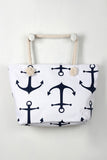 This tote bag features large anchor prints throughout and braided handles. Inside features full lining and an open pocket.