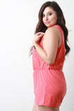 Metal Zipper Neckline Sleeveless Romper