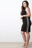 Side Striped Zip Up Sleeveless Bodycon Dress