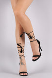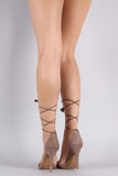 • Anne Michelle Suede Tassel Lace-Up Open Toe Heel