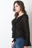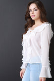 Chiffon Cascade Ruffle Long Sleeve Blouse Top