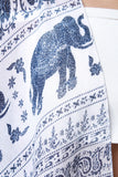 This poncho features woven fabrication, tribal inspired elephant print, kimono style sleeve, open front, square cut and a fringe tassel trim hem. Accessories sold separately. 100% Polyester.