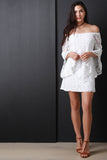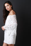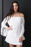 Lace Off the Shoulder Tulip Sleeve Mini Dress