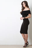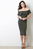 Off-The-Shoulder Ruffle Bodycon Midi Dress