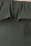 • Off-The-Shoulder Ruffle Bodycon Midi Dress
