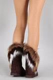 These warm faux fur collar design, round toe silhouette, and low flat heel. Finished with cushioned insole, soft faux fur interior lining, and easy pull on style.