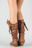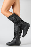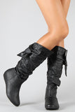 You will be cutie in these gorgeous knee high boots . It features round toe silhouette, slouchy shaft design, and wrapped around strap with knotted details. Finished with cushioned insole, smooth interior lining, and low hidden wedge heel for all day comfort. Pull on construction with partial side zipper closure for easy on/off.