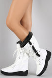 These warm snow boots feature a smooth water-resistant nylon upper with faux fur cuff, decorative D-ring with lace up design, stitching accents, and low heel. Finished with cushioned insole, soft faux fur interior lining, and full-length side zipper closure for easy on/off.