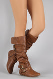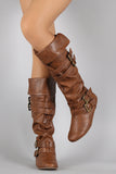 Slouchy vegan leather low flat heel , and side zipper closure for easy on/off.