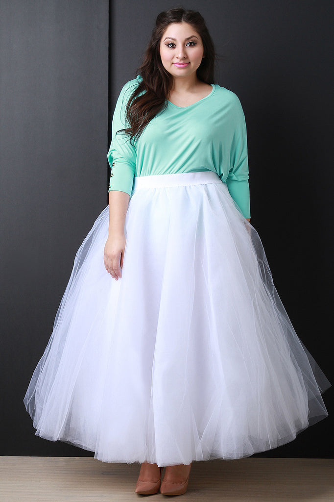 A maxi skirt featuring a wide elastic waistband, voluminous layers of tulle, and smooth interior lining. Accessories sold separately. Self: 100% Polyester. Lining: 95% Polyester, 5% Spandex.