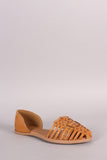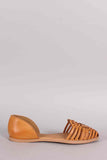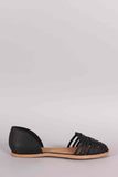 This stylish woven detailed flat sandal features vegan leather with a round closed toe and dorsay design. Includes lightly padded insole for all day comfort.