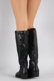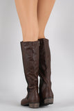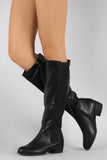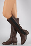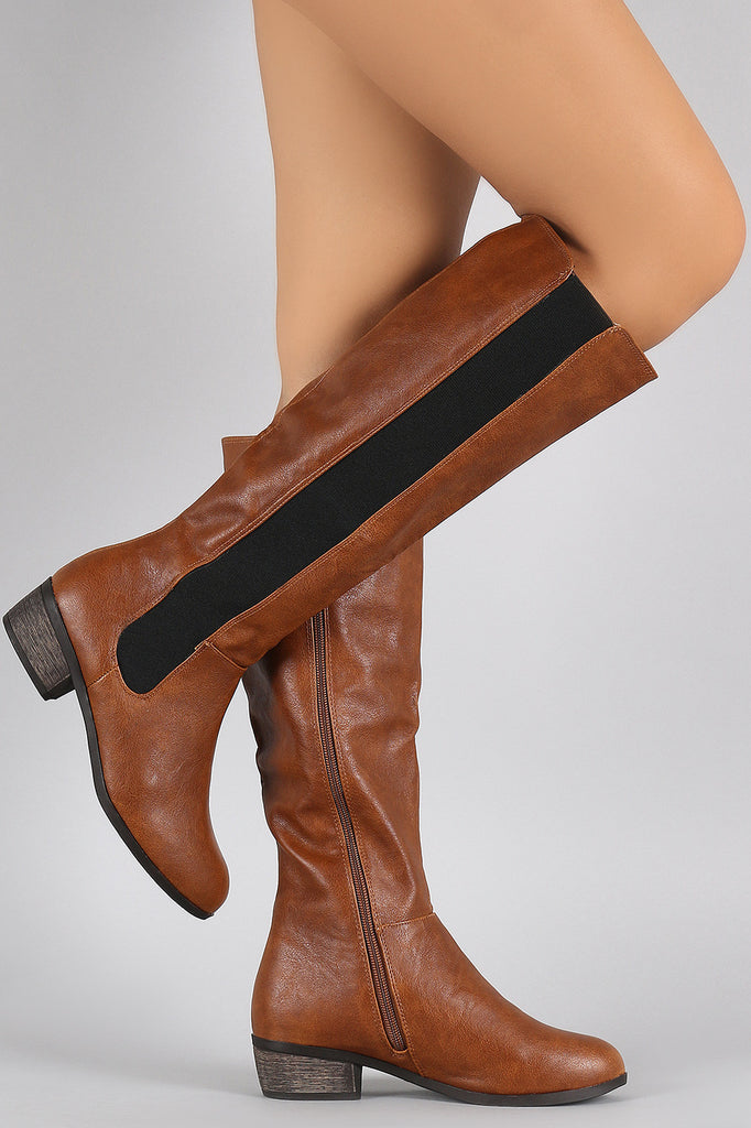 These knee high boots feature a round toe silhouette, elasticized side panel, stitching accents, and low heel. Finished with cushioned insole, soft faux fur interior lining, and full-length side zipper closure for easy on/off.