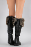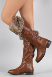 These faux fur cuff design, rounded toe, top stitching accents, and stacked block heel. Finished with cushioned insole, soft faux fur interior lining, and rear zipper closure for easy on/off. Unfold the cuff for completely different looks!