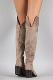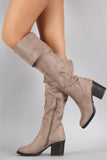 These over the knee length. Light faux fur lining. Finished on stacked heel.
