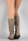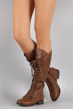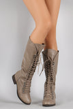 These knee high boots feature a round toe silhouette, lace up design, top stitching accents, and low heel. Finished with cushioned insole, smooth interior lining, and full-length side zipper closure for easy on/off.
