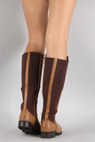 These edgy knee high boots feature a round toe silhouette, vegan suede with elasticized panels insert, stitching accents, and low stacked heel. Finished with cushioned insole, partial faux fur interior lining, and full-length side zipper closure for easy on/off.