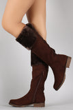 These cozy faux fur cuff that can be wear up or down for two different looks! Also features a round toe silhouette, partial elastic gore back panel, and low block heel. Finished with cushioned insole and faux fur interior lining for all day comfort. Pull-on construction with partial side zipper closure for easy on-and-off wear.
