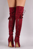 These striking lace up front with embroidered zigzag design alongside, and removable braided buckled strap with snap button accent. Finished with low hidden platform, wrapped stiletto heel, cushioned insole, and partial back zipper closure.