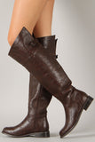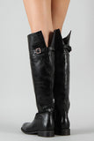 This trendy boot features a round toe silhouette, slit detail at the back with buckle strap detail, side zipper closure, and low stacked heel. Finished with soft padded insole for extra comfort.