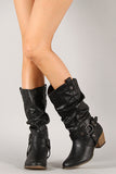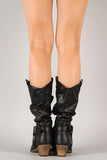 This cowboy boot offers a stylish look that will never fade. Features round toe, decorative buckle strap with O-ring detail, dual pull on tab at the top, stitching accents, faux wooden low heel, cushioned insole, and smooth interior lining for your comfort. Easy pull on construction.
